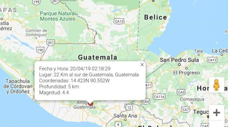 Según información preliminar de la Conred, el temblor se registró a las 2.18 horas de este domingo con magnitud 4.4 y epicentro a 22 kilómetros al sur de la ciudad de Guatemala.