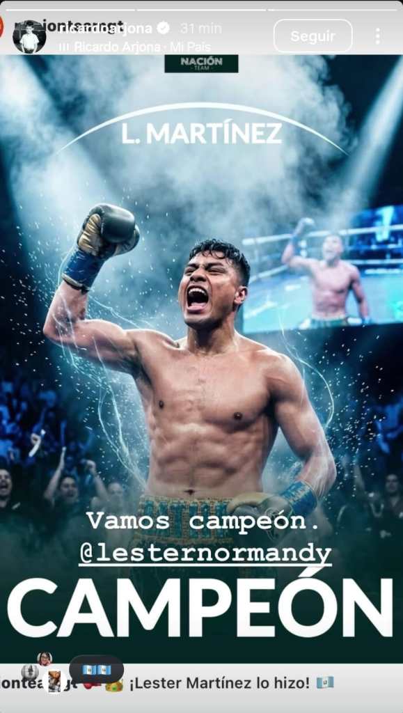 Ricardo Arjona, artista guatemalteco, publica una historia en Instagram en la que reconoce al boxeador Léster Martínez tras su victoria en el ring.