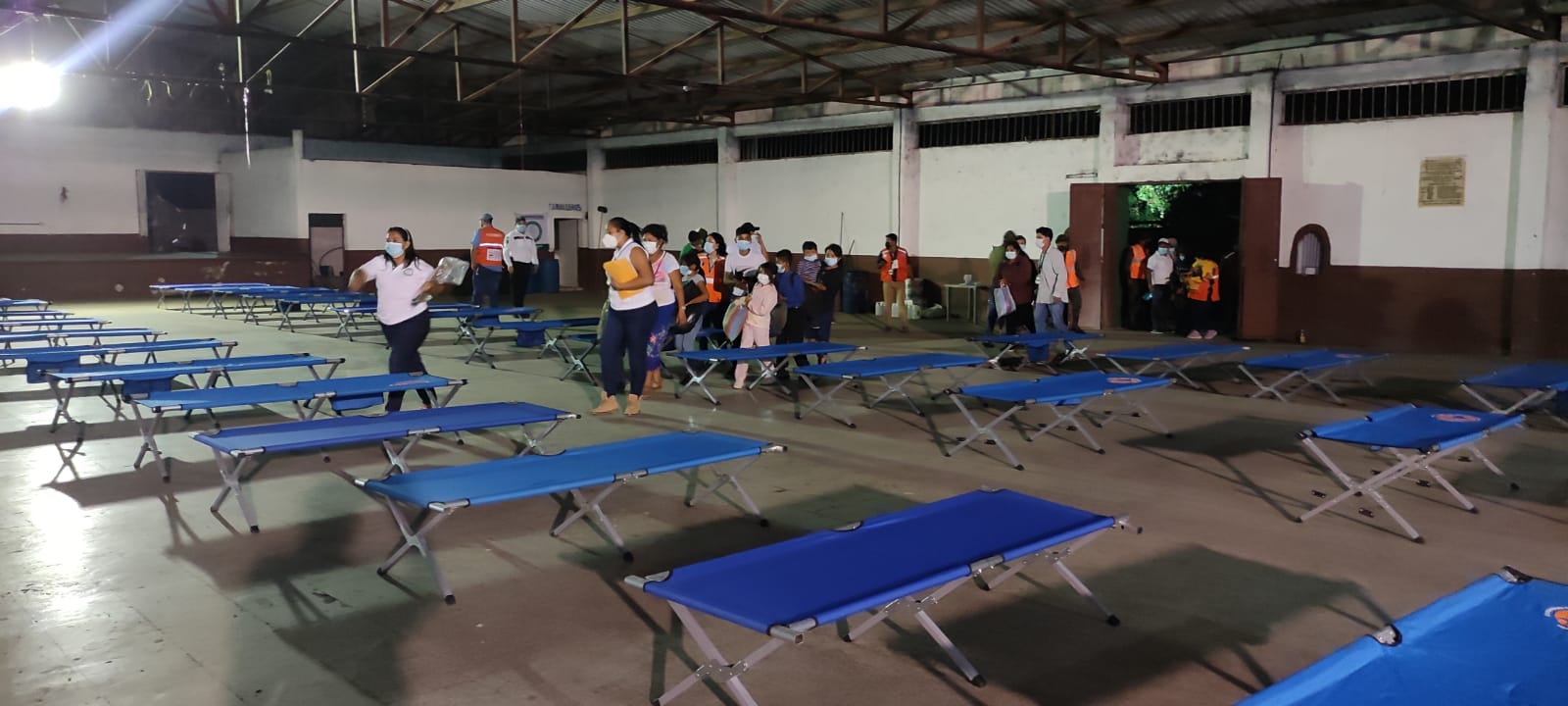 Comienzan a llegar las primeras familias de Panimaché que se albergarán en el salón municipal del Campo de la Feria, de Santa Lucía Cotzumalguapa, Escuintla, por la erupción del Volcán de Fuego.