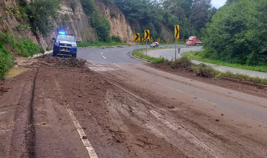 Lluvias provocan descenso de flujo de lodo y escombros en el en el Kilómetro 136 CA-01 Sololá. Se coordina con Covial para los trabajos de limpieza. Maneje con precaución si circular por el lugar.