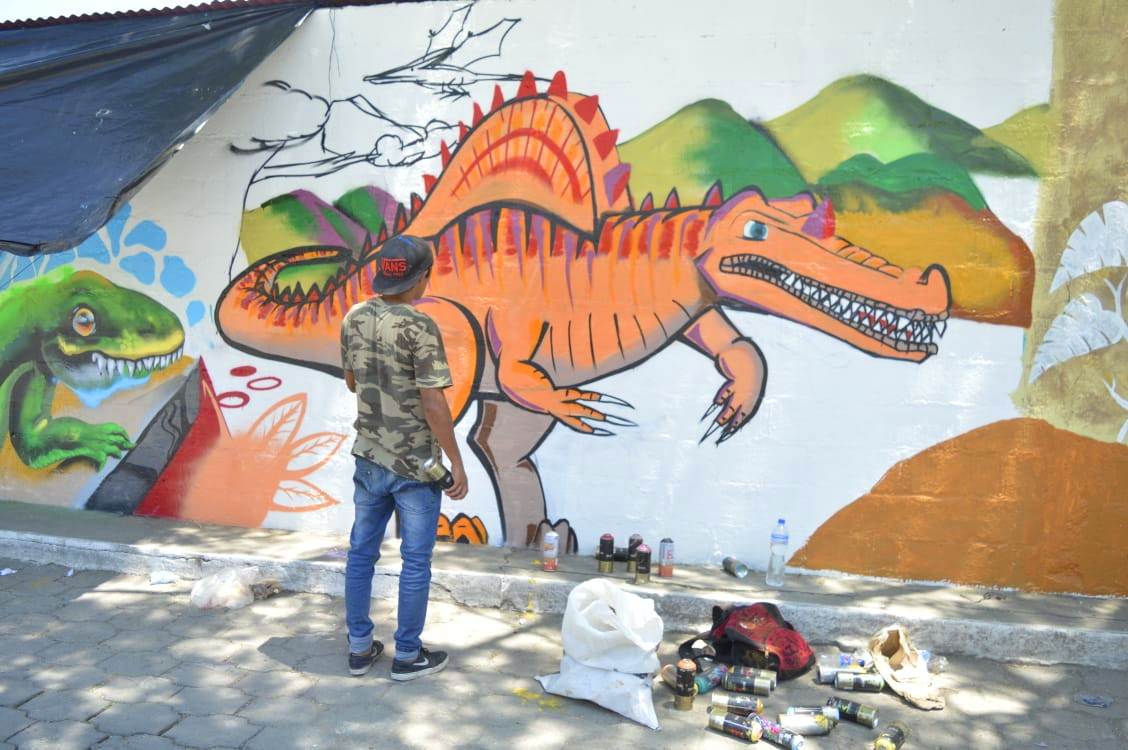 Jóvenes estudiantes pintaron murales en las paredes cercanas al Museo de Paleontología en Estanzuela, Zacapa. Lea más sobre esta expresión artística aquí: bit.ly/2KclclJ