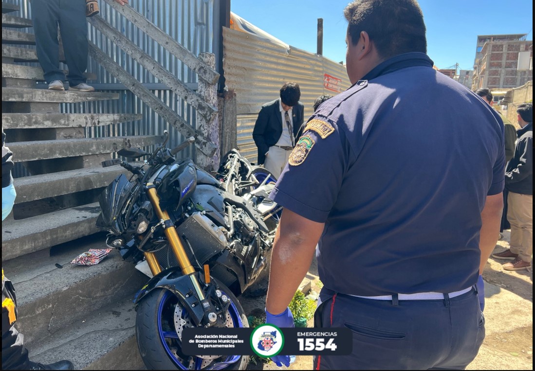 Una motocicleta impactó contra una pasarela en el que había varias personas que resultaron heridas, informaron los Bomeros Municipales Departamentales.