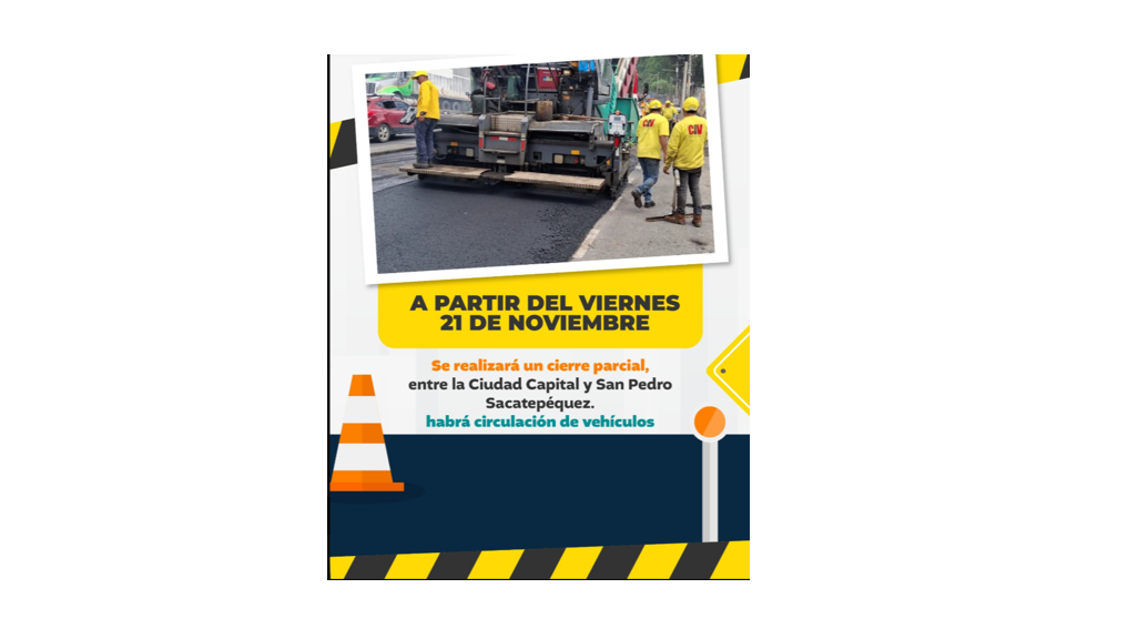 Anuncian cierre parcial en ruta entre la capital y San Pedro Sacatepéquez