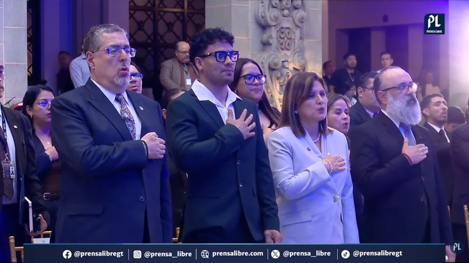 El presidente de Guatemala, Bernardo Arévalo, condecora a Léster Martínez en un acto en el Palacio Nacional de la Cultura, donde destaca su logro al consagrarse campeón mundial interino de boxeo profesional.