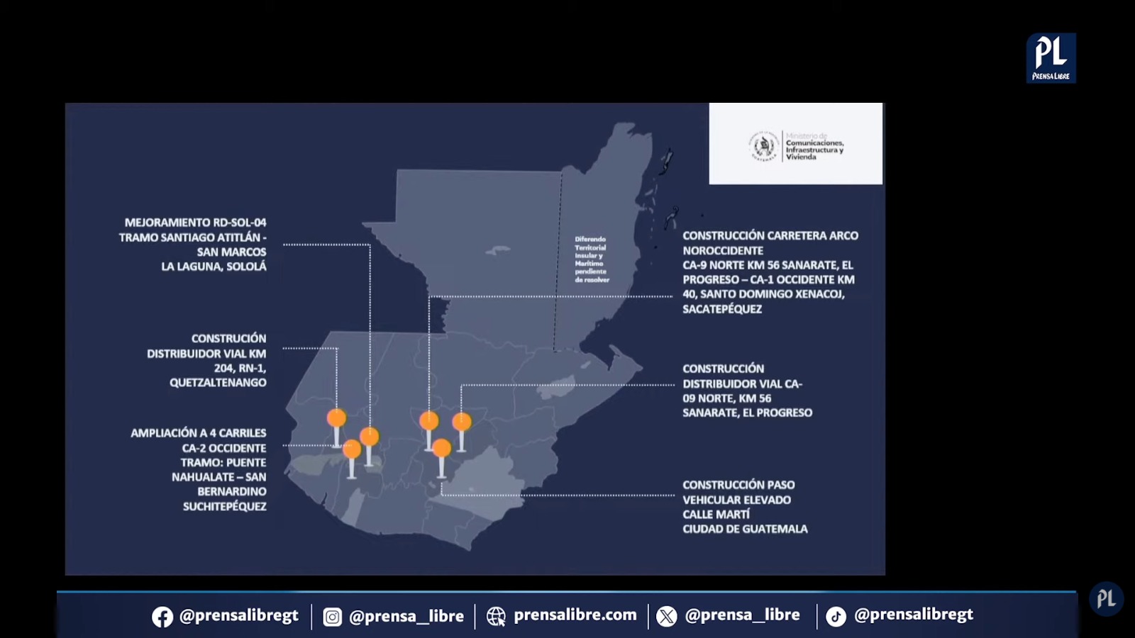 La conferencia anuncia seis obras clave de infraestructura junto al Cuerpo de Ingenieros. (Foto: Prensa Libre, Ministerio de Comunicaciones, Infraestructura y Vivienda -CIV-)..