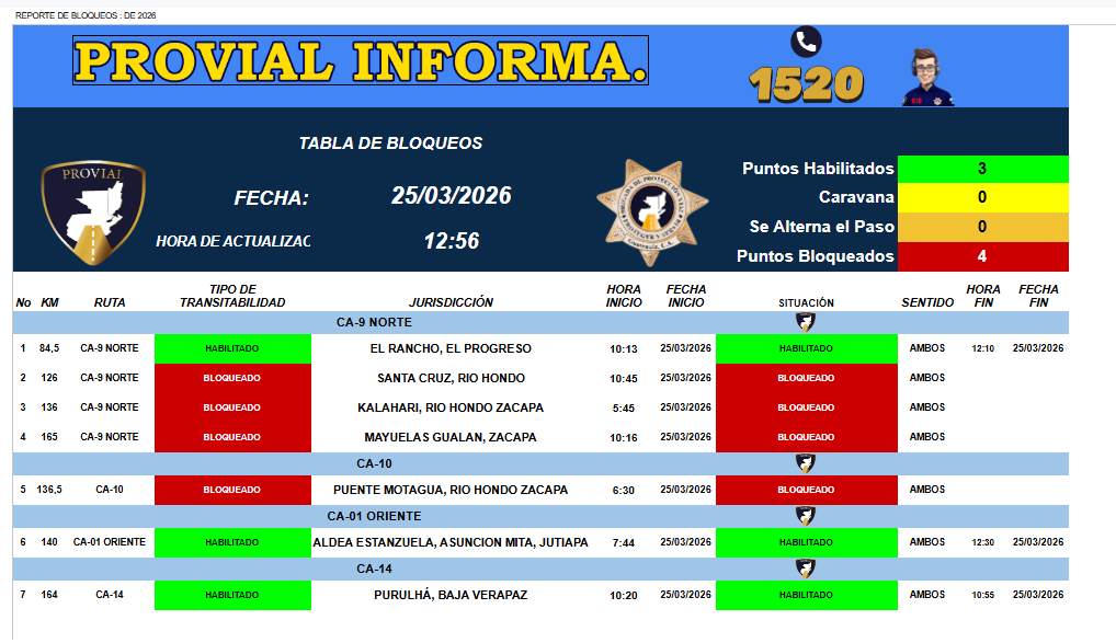 El kilómetro 84.5 de la ruta CA-9 Norte, en El Rancho, El Progreso, está habilitado.