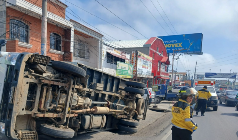 Los Bomberos Voluntarios de Chimaltenango reportaron un accidente de tránsito en el kilómetro 55 de la ruta Interamericana, donde la 21 compañía del departamento atendió el vuelco de un camión.