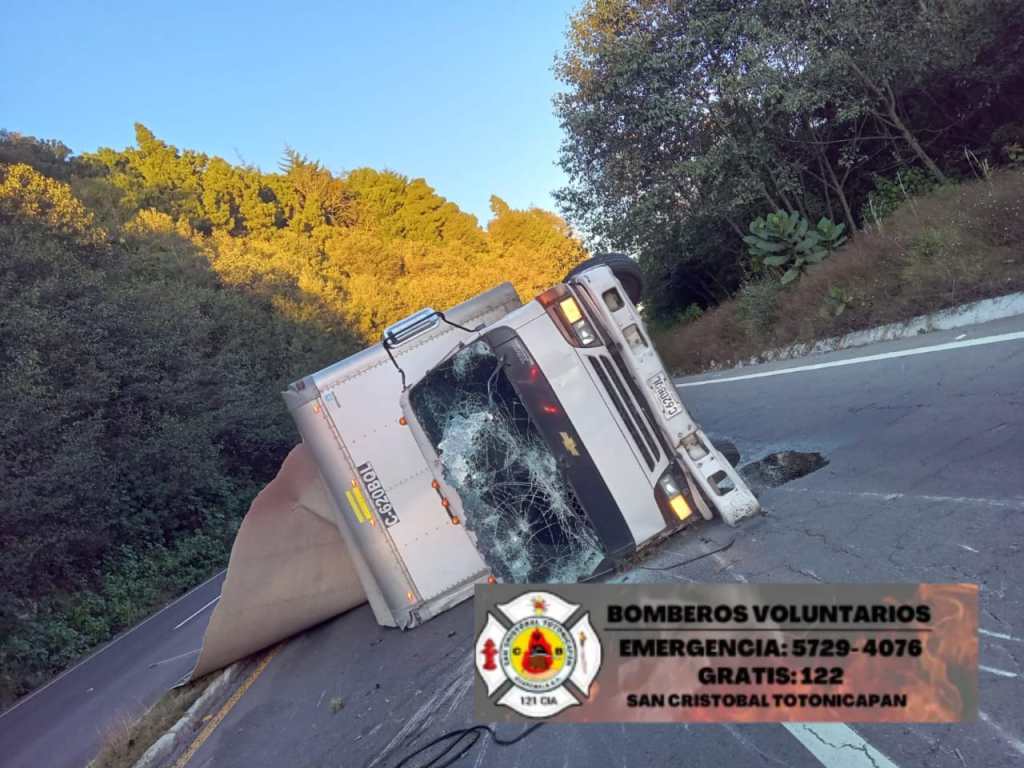 Los Bomberos Voluntarios informan que un camión se accidentó en el kilómetro 171.5 de la ruta Interamericana, rumbo a occidente.