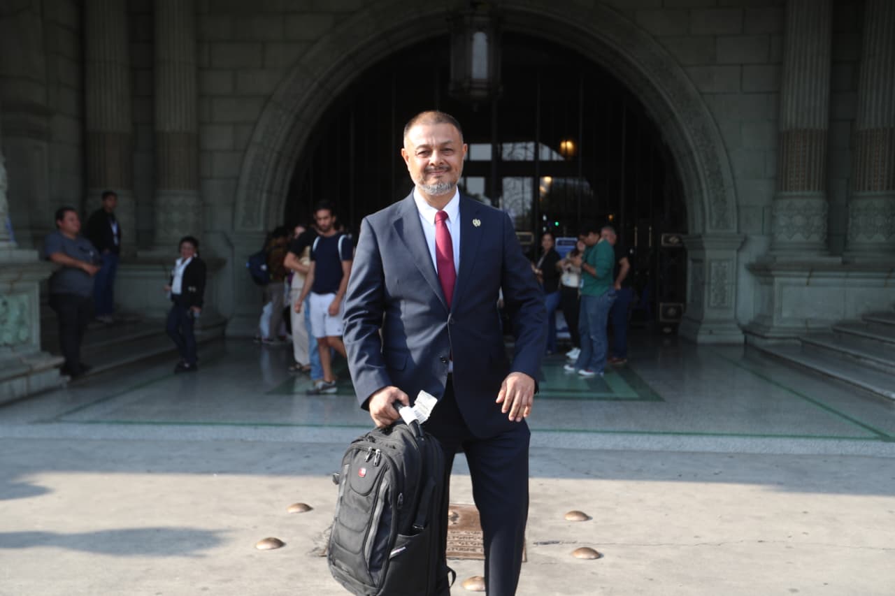 Carlos Alberto García Alvarado, candidato a fiscal general y jefe del Ministerio Público, sale del Palacio Nacional de la Cultura tras su entrevista con el presidente Bernardo Arévalo, como parte del proceso de selección del nuevo titular de esa institución.