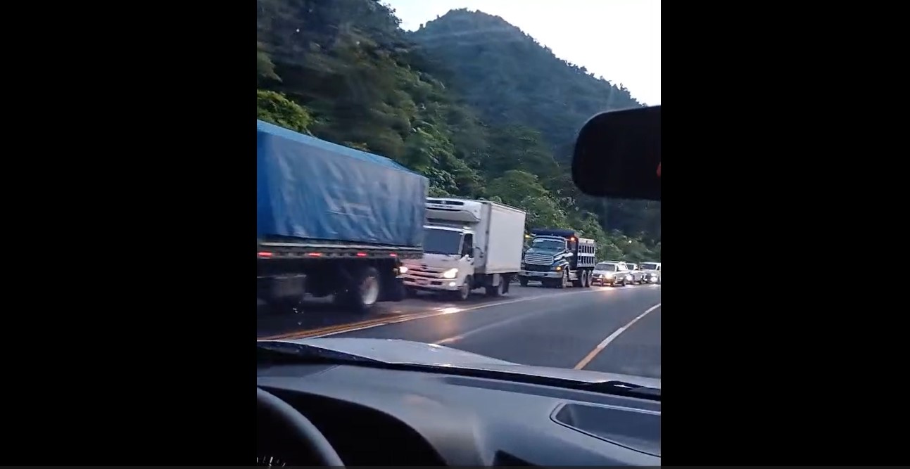 Se reportan varias filas de vehículos en ambos sentidos por deslave en el sector conocido como Los Pirineos, informaron autoridades.