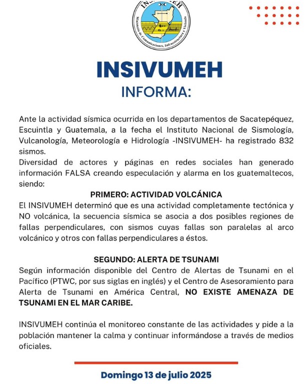 El Insivumeh advirtió este domingo de información falsa respecto de los sismos está circulando en redes sociales, lo cual crea incertidumbre y especulación.