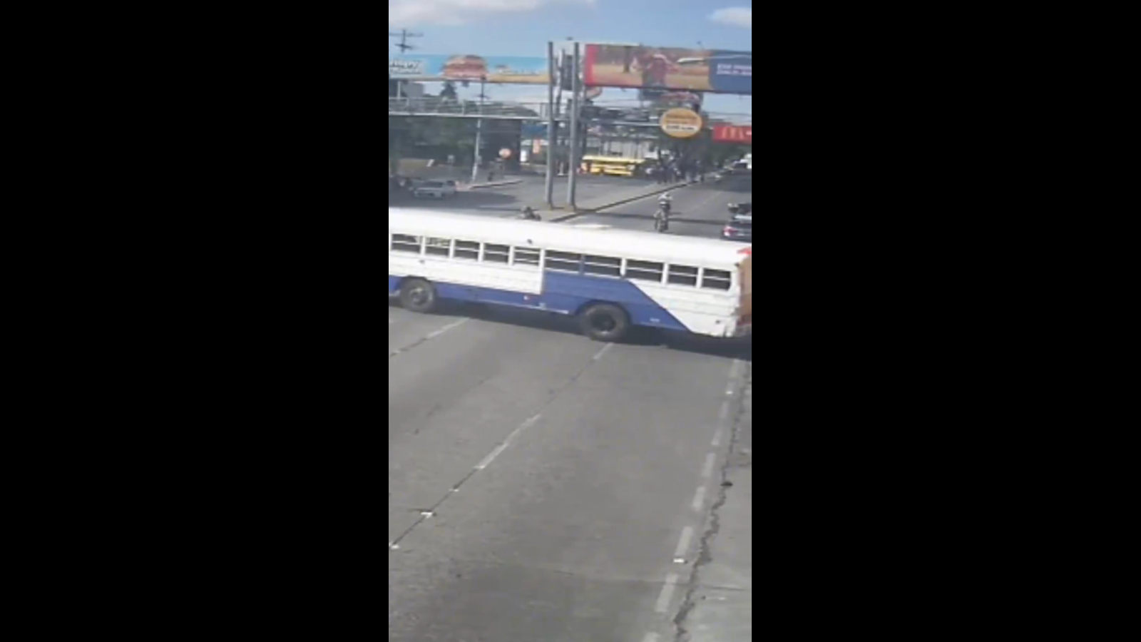 Un grupo de encapuchados bloquea la avenida Petapa y 32 calle, zona 12, al cruzar buses en protesta por el alza al combustible, lo que afecta el tránsito en el sector.