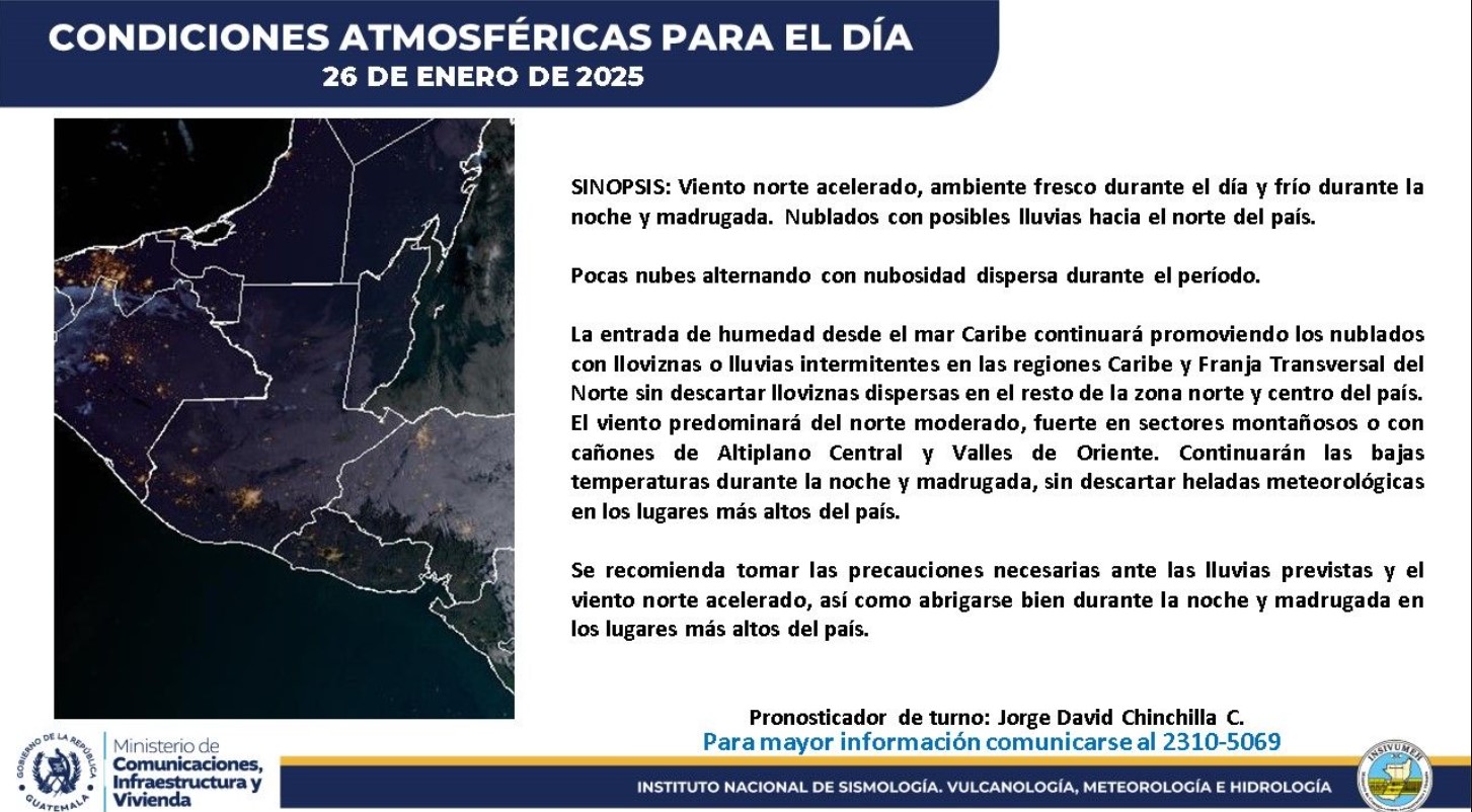 Insivumeh insta a tomar precauciones y no descarta heladas meteorológicas.
