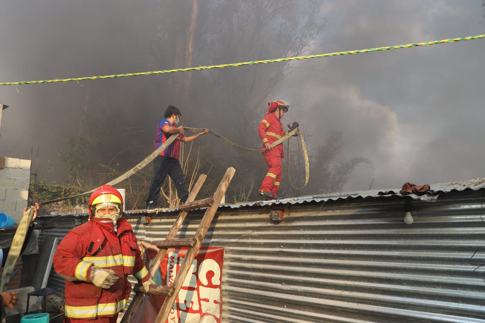 Se continúa en la labor de extinción de un incendio de gran magnitud en la 39 calle y 31 avenida final, zona 7 colonia Amparo 2; varias casas han sido afectadas por el fuego. El incendio inició como forestal y posteriormente por el viento se propagó a las viviendas#CVBalServicio pic.twitter.com/lL4Yz9lbtj