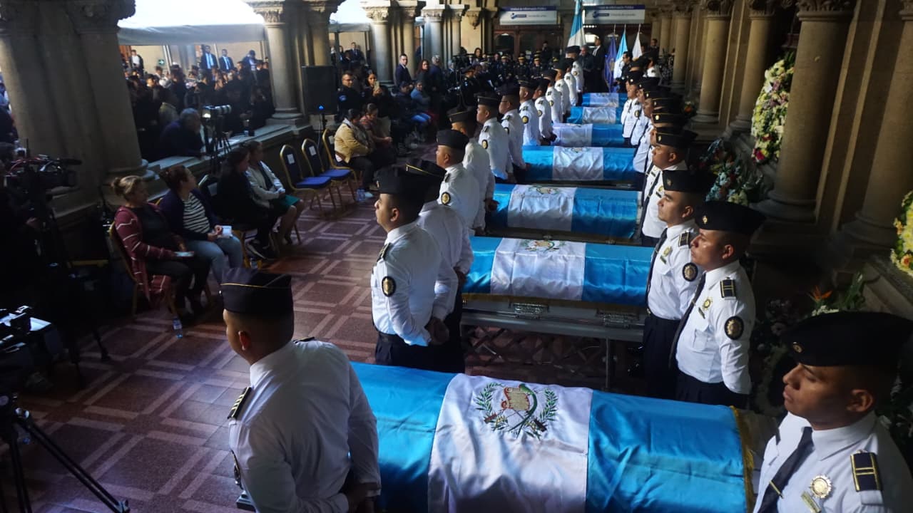 El funcionario rinde honras fúnebres a los policías fallecidos y expresa su solidaridad a sus familias.