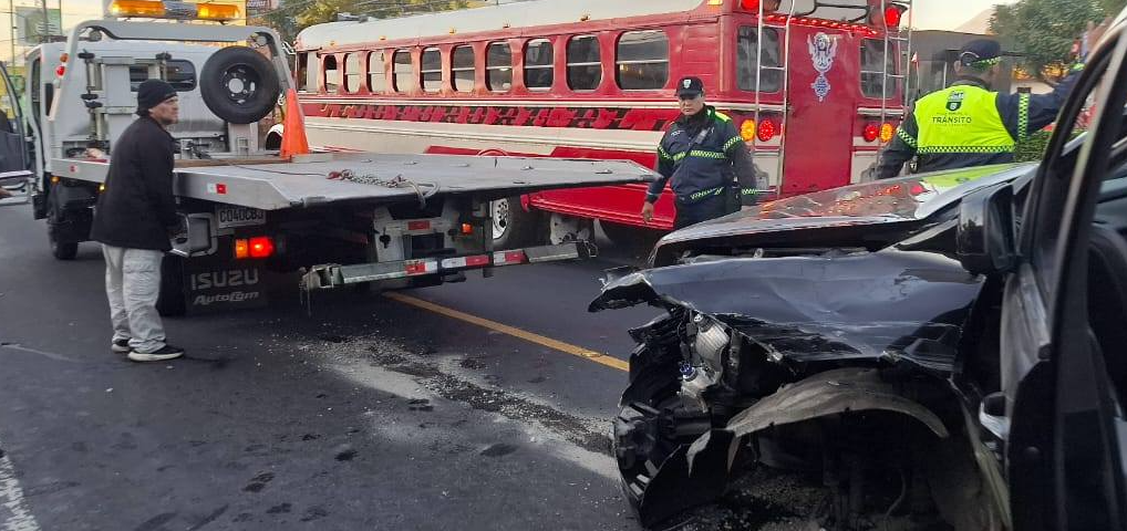 Accidente afecta la movilidad en Boca del Monte, Villa Canales. (Foto Prensa Libre: PMT de Villa Canales)