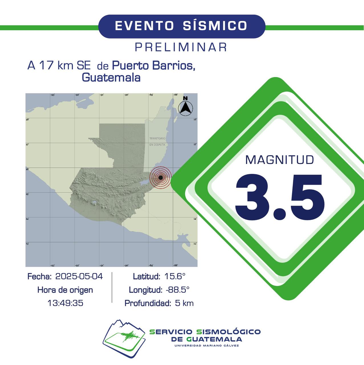 De acuerdo con el reporte, el epicentro del temblor se ubicó a 17 km de Puerto Barrios.