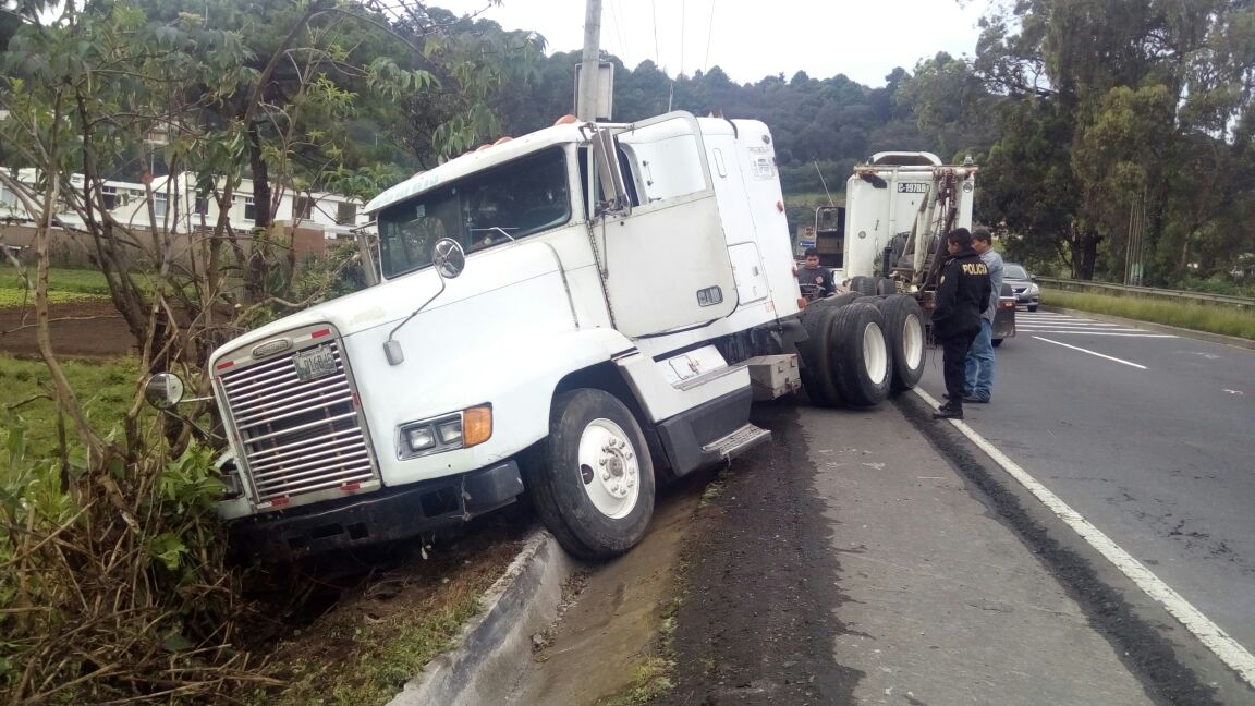 Detienen momentáneamente el tránsito en el kilómetro 36 de la ruta Interamericana, hacia occidente, por maniobras de grúa para retirar cabezal que se salió de la carretera.