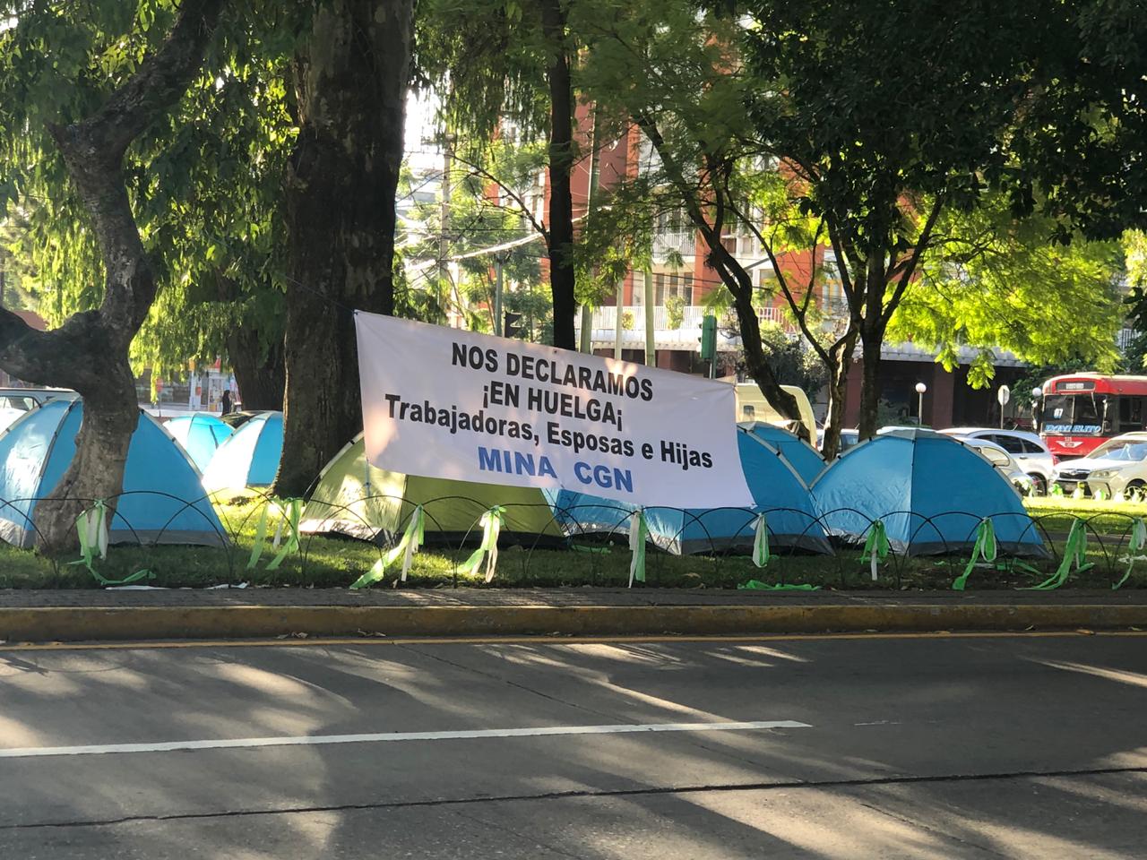 Trabajadoras de la mina Fénix se instalan con casas de campaña en zona 9