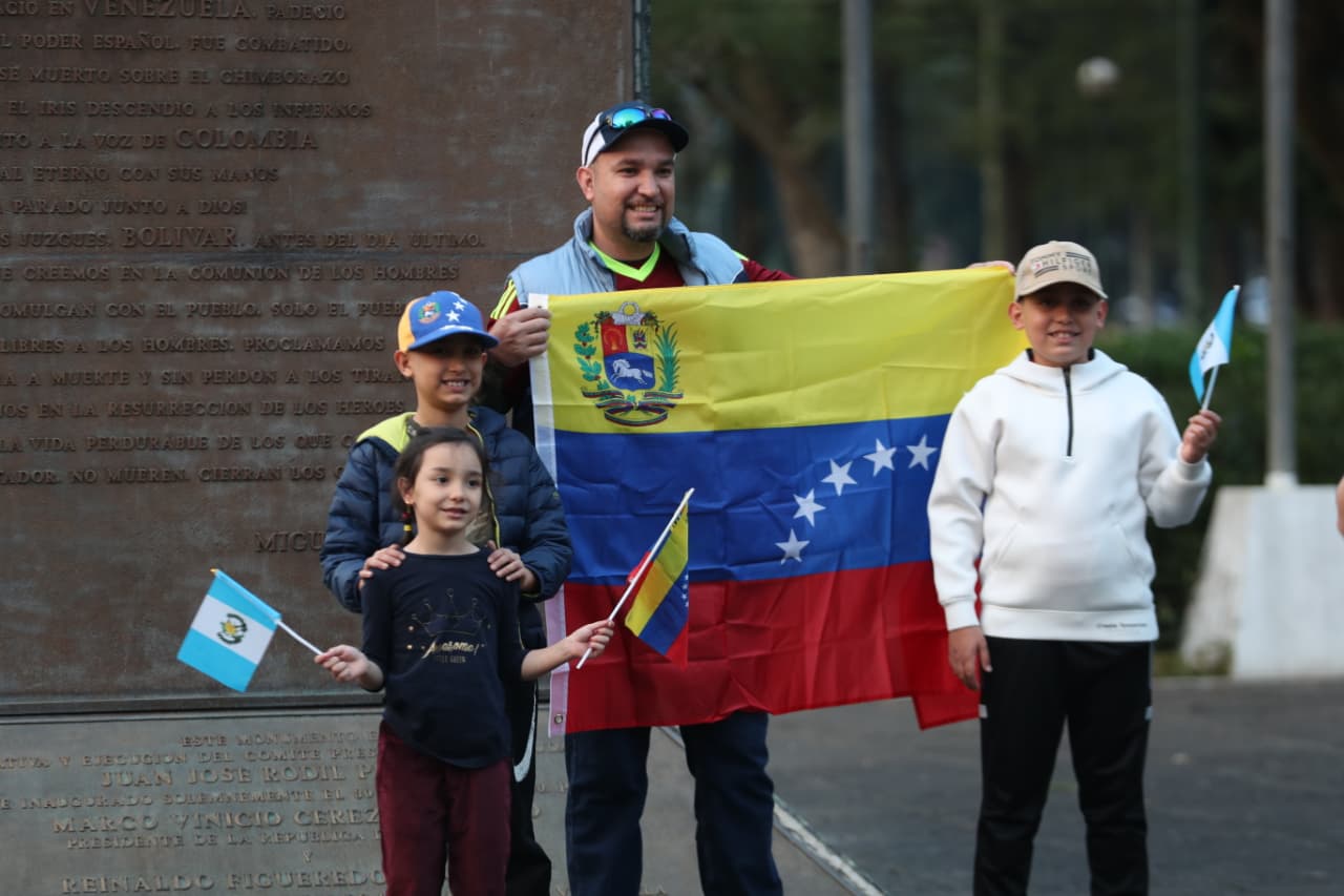 Asimismo, se reporta una concentración de la comunidad venezolana residente en Guatemala, en la plaza Bolívar, ubicada en la zona 1 de la ciudad capital, un espacio verde que originalmente albergó un monumento a Bolívar, con una figura ecuestre donada por Venezuela en 1990.