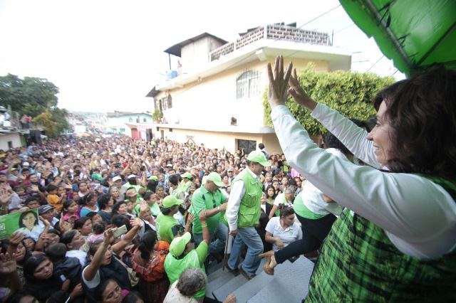 La candidata presidencial Sandra Torres llegó esta tarde a la colonia Belén, en Mixco como parte de su campaña política.