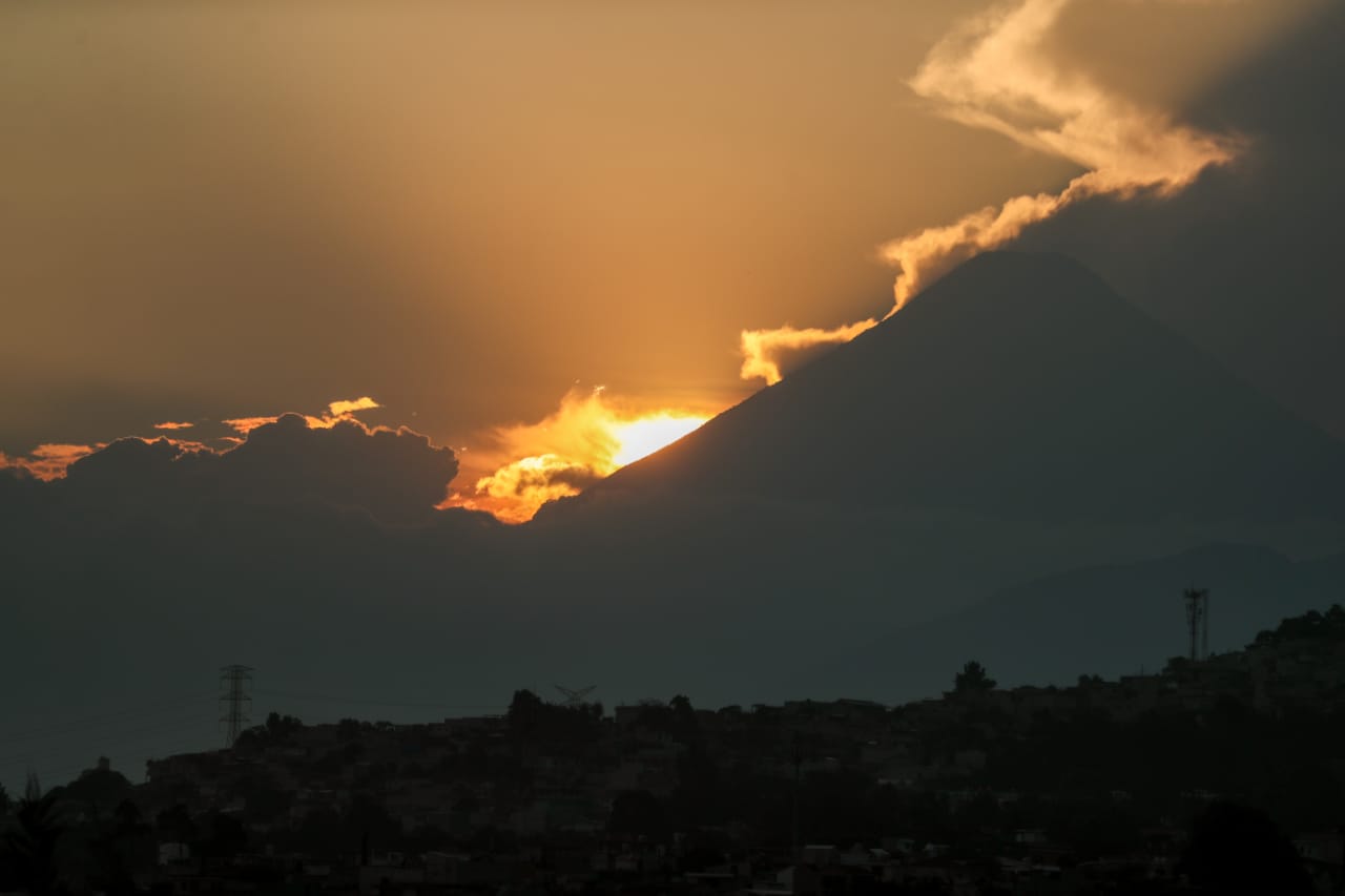 Así se ocultó el sol en Guatemala en el primer día del año 2020. El imponente sol pinta de colores el cielo mientras desaparece en el horizonte.