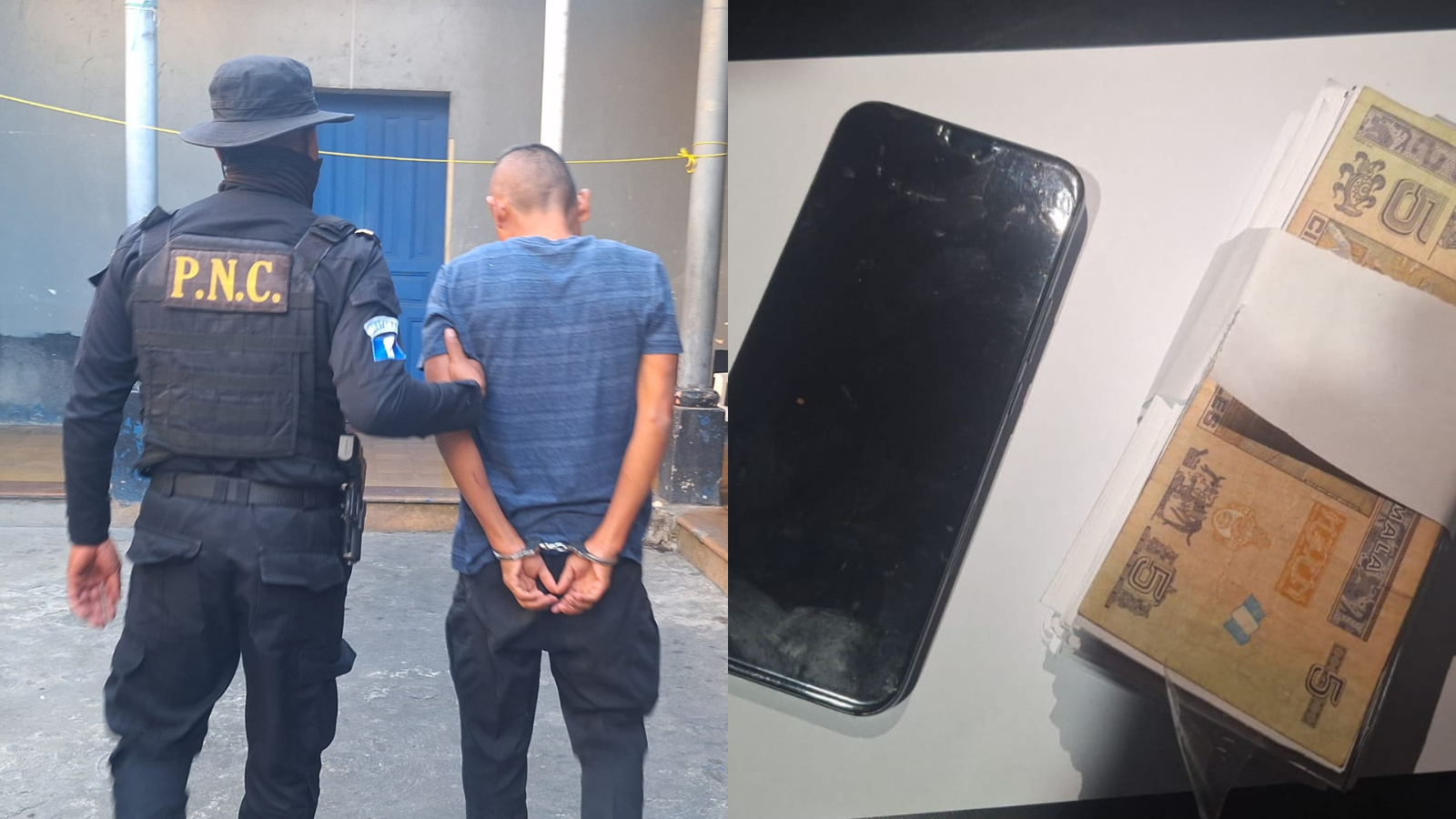 Presunto extorsionista sorprendido en Santa Cruz del Quiché; policía lo detiene en flagrancia.