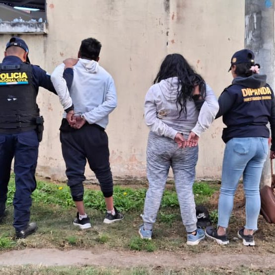 Investigadores de la División Nacional contra el Desarrollo Criminal de las Pandillas (Dipanda) de la Policía Nacional Civil (PNC) capturaron en la zona 10 de Quetzaltenango a Giovani Juan N., de 31 años, y a Sara Leticia P., de 25, quienes se conducían en la motocicleta M-514LHJ. Según la PNC, ambos serían integrantes de la autodenominada pandilla barrio 18.