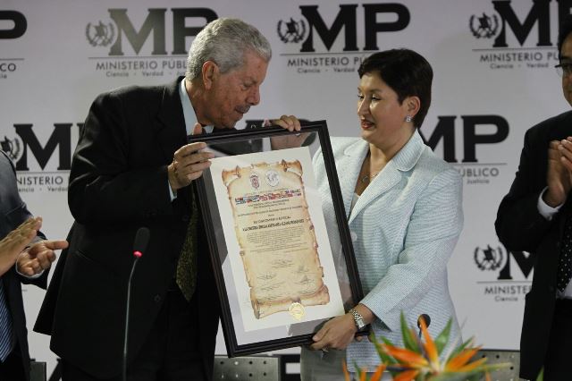 El Colegio de Abogados entrega reconocimiento a la Fiscal General Thelma Aldana, y agradece desarticulación de estructura implicada en asesinato de dos abogados. El homenaje es por su lucha contra la corrupción en el país.