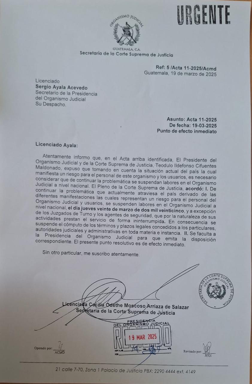 La suspensión de labores en el Organismo Judicial aplica a nivel nacional.