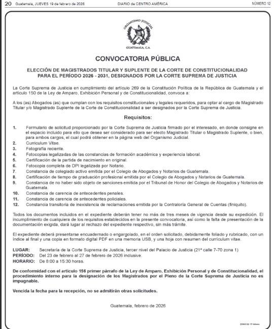 CSJ convoca a aspirantes para la elección de la Corte de Constitucionalidad