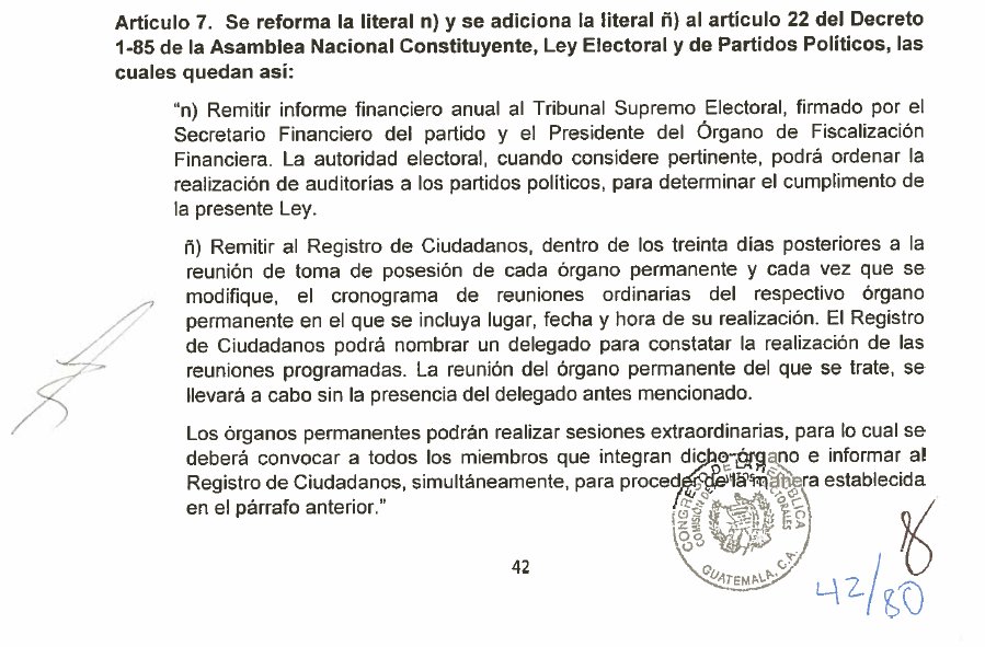 Los artículos 7 y 8 de la reforma a la Ley Electoral y de Partidos Políticos se perdieron definitivamente al ser improbados por los diputados del Congreso de la República.