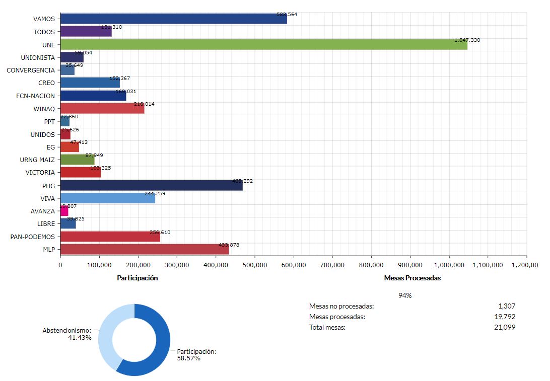 TSE ha computado el 94% de votos para Presidencia