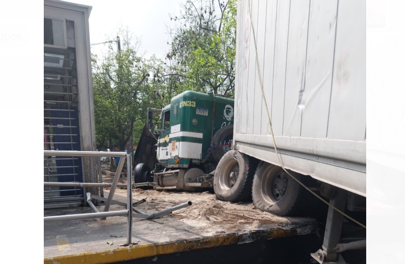Tráiler choca contra estructura del Transmetro en la zona 7 capitalina.