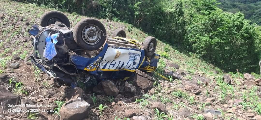 Autopatrulla de la PNC cae en hondonada en Santa Rosa y deja dos agentes heridos