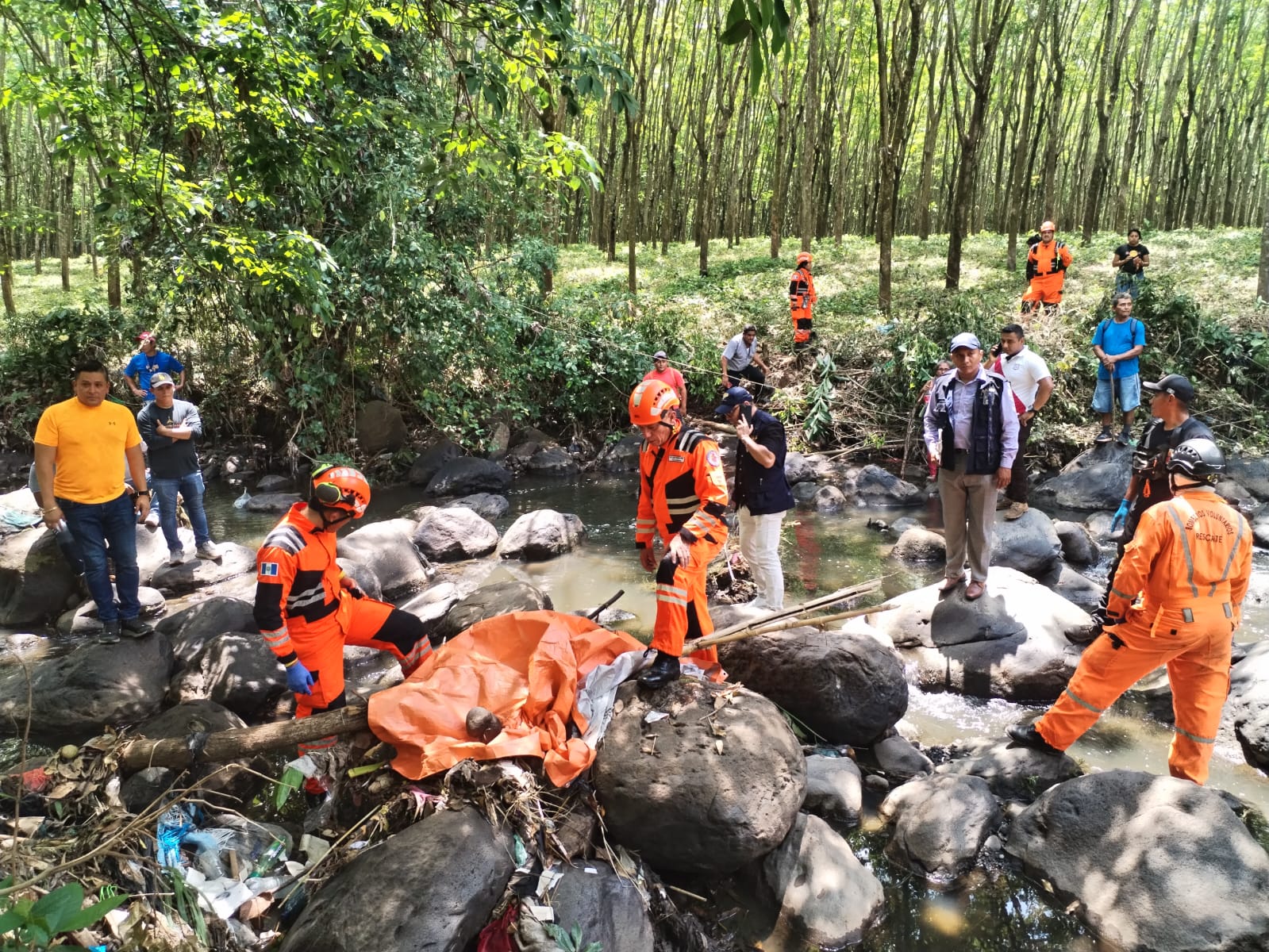 Elementos de brigada especial de rescate localizaron el cuerpo a orillas de un río. (Foto: Prensa Libre, Bomberos Voluntarios).