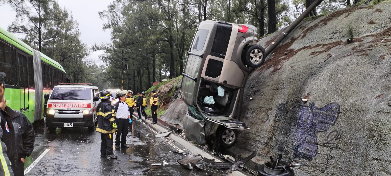 Los Bomberos Voluntarios reportaron que el automotor cayó desde un paredón sobre el Anillo Periférico, en la colonia Bethania, en dirección al Centro Histórico.