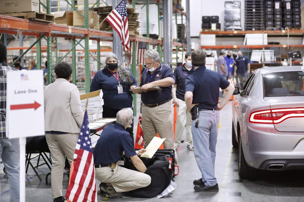 LARGO, FL - NOVEMBER 03: Workers at the Pinellas County Supervisor of Elections Office process voters' ballots inside of the Elections Service Center Operations Department on November 3, 2020 in Largo, Florida. After a record-breaking early voting turnout, Americans head to the polls on the last day to cast their vote for incumbent U.S. President Donald Trump or Democratic nominee Joe Biden in the 2020 presidential election. Octavio Jones/Getty Images/AFP == FOR NEWSPAPERS, INTERNET, TELCOS & TELEVISION USE ONLY ==