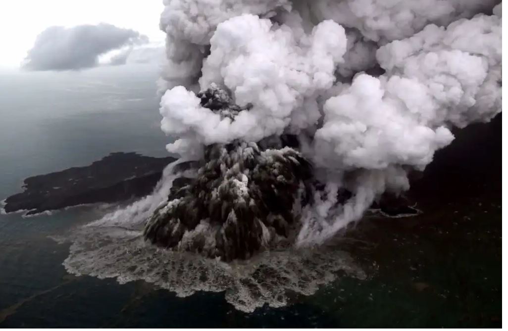 El 22 de diciembre de 2018, una fuerte erupción nocturna del volcán provocó el derrumbe parcial del cono de la montaña, lo que a su vez causó un tsunami que sorprendió a cientos de personas que pasaban las vacaciones de Navidad en las costas de Java y Sumatra.