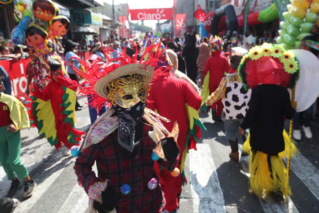 Pobladores llevan a cabo este martes un desfile de comparsas en la avenida La Libertad y 10 calle con dirección al campo de la feria.