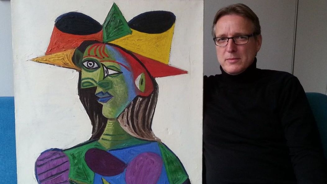 El investigador Arthur Brand posa junto al cuadro 'Busto de mujer', de Picasso (Foto Prensa Libre: Tetteroo)