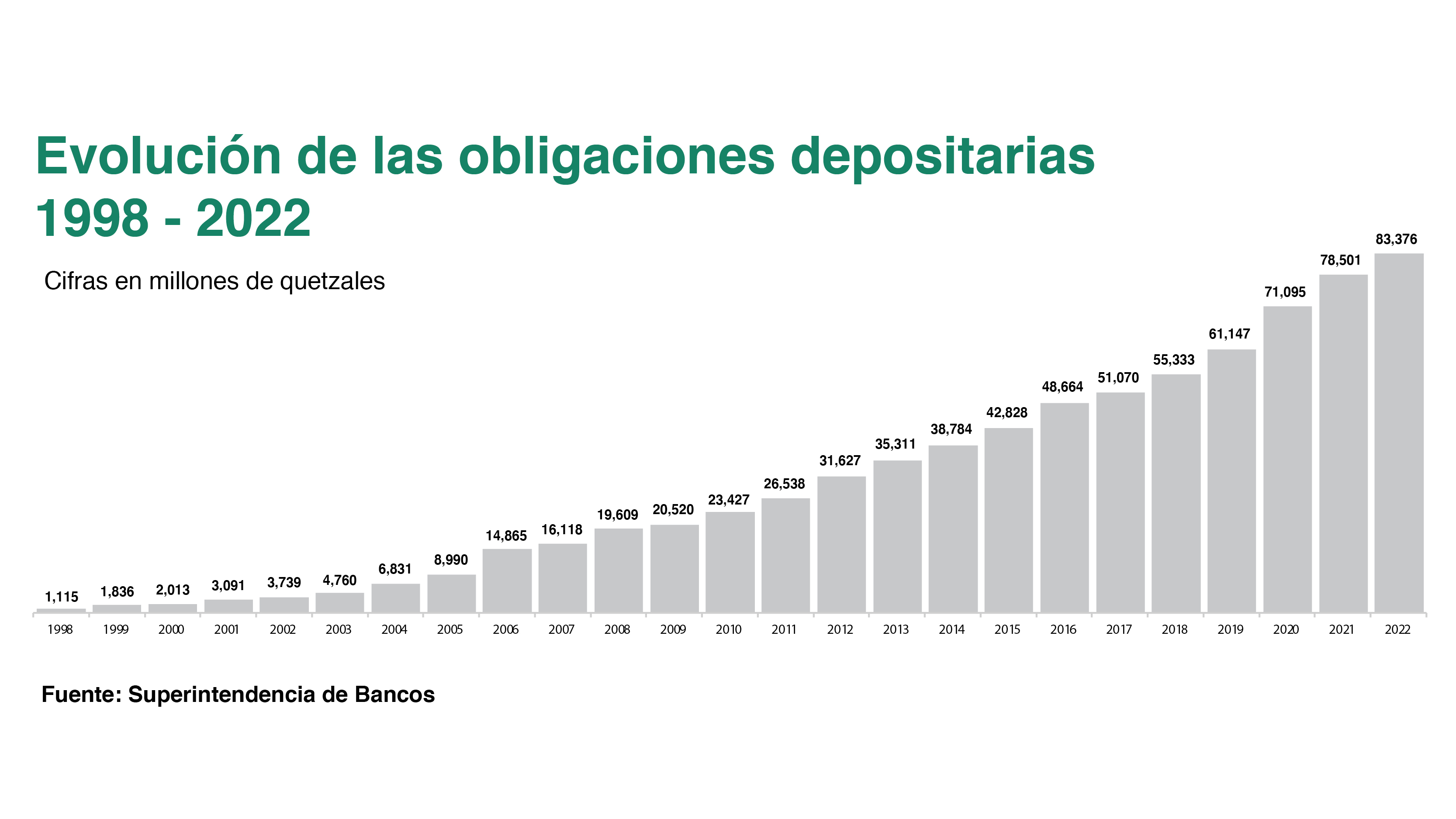 <p style="text-align: justify;">Depósitos por Q83,376 millones a diciembre de 2022, un 6.2% más que los datos registrados en 2021(Q78,501 millones) quedó reportado por Banrural al hacer los primeros análisis de resultados interanuales.</p> <p style="text-align: justify;">Además de mantenerse en primer lugar en el pago de remesas, con el 52%, los indicadores del banco arrojan resultados robustos de liquidez, solidez y solvencia. En 2022 registró una liquidez inmediata de 19.7% y una liquidez mediata de 62.1%, lo cual se combina con un patrimonio con relación a activos de 10.5% y un índice de adecuación de capital de 21.1%. Adicionalmente, obtuvo un rendimiento sobre patrimonio del 26.1% y un rendimiento sobre activos del 2.6%, lo cual se combina con una reserva de provisiones para la cartera crediticia en riesgo de 400%.</p> <p style="text-align: justify;">A 25 años de su fundación, Banrural cuenta con la mejor calificación nacional para un banco de capital guatemalteco, otorgado por Fitch Ratings. El 22 de febrero pasado obtuvo una calificación de largo plazo nacional AA (gtm), corto plazo nacional F1+(gtm), y largo plazo internacional (BB), con perspectiva estable.</p> <p style="text-align: justify;"><img class="alignnone size-large wp-image-14643516" src="https://www.prensalibre.com/wp-content/uploads/2023/03/01-NOTA-WEB-B-NEW.jpg?quality=52&w=1024" alt="" width="1024" height="576" /></p> <p style="text-align: justify;">Los resultados de sus 25 años de gestión muestran un crecimiento sostenido y los del año recién pasado 2022 registran un crecimiento importante con respecto del 2021. Sus activos al cierre de 2022 fueron de Q101,794 millones, es decir Q100,500 millones más que los registrados en 1998. Esto representa un crecimiento del 7,766.6% en sus 25 años de operación.</p> <p style="text-align: justify;">Al cumplir un cuarto de siglo operando en el país, el banco registra 10,022 puntos de servicios, entre agencias, agentes bancarios (con nombre comercial “Caja Banrural”) y cajeros automáticos en todos los municipios del país. Durante el año pasado, el 40.8% de los créditos otorgados corresponden a montos menores a Q25mil, y el 27% a menores de Q50mil. En 9 departamentos del país – algunos de ellos con altos niveles de pobreza y pobreza extrema - otorgó más de la mitad de los créditos otorgados por el sistema bancario nacional.</p> <p style="text-align: justify;">El 2 de enero de 2023, Banrural cumplió 25 años de inicio de operaciones, desde su apertura en enero de 1,998. Después de ese periodo, se coloca como el segundo banco más grande en activos a nivel nacional, como el tercero en Centroamérica, situación que le permite constituirse como el segundo Grupo Financiero más grande de la región. Su preparación para seguir creciendo, consignan sus ejecutivos, les ha llevado a ser el primer banco de Centroamérica en obtener la norma ISO 37001:2016, otorgada por la entidad World Compliance Association. De igual forma cuenta con el Sistema de Gestión de Calidad bajo la norma ISO-9001-2015.</p>
