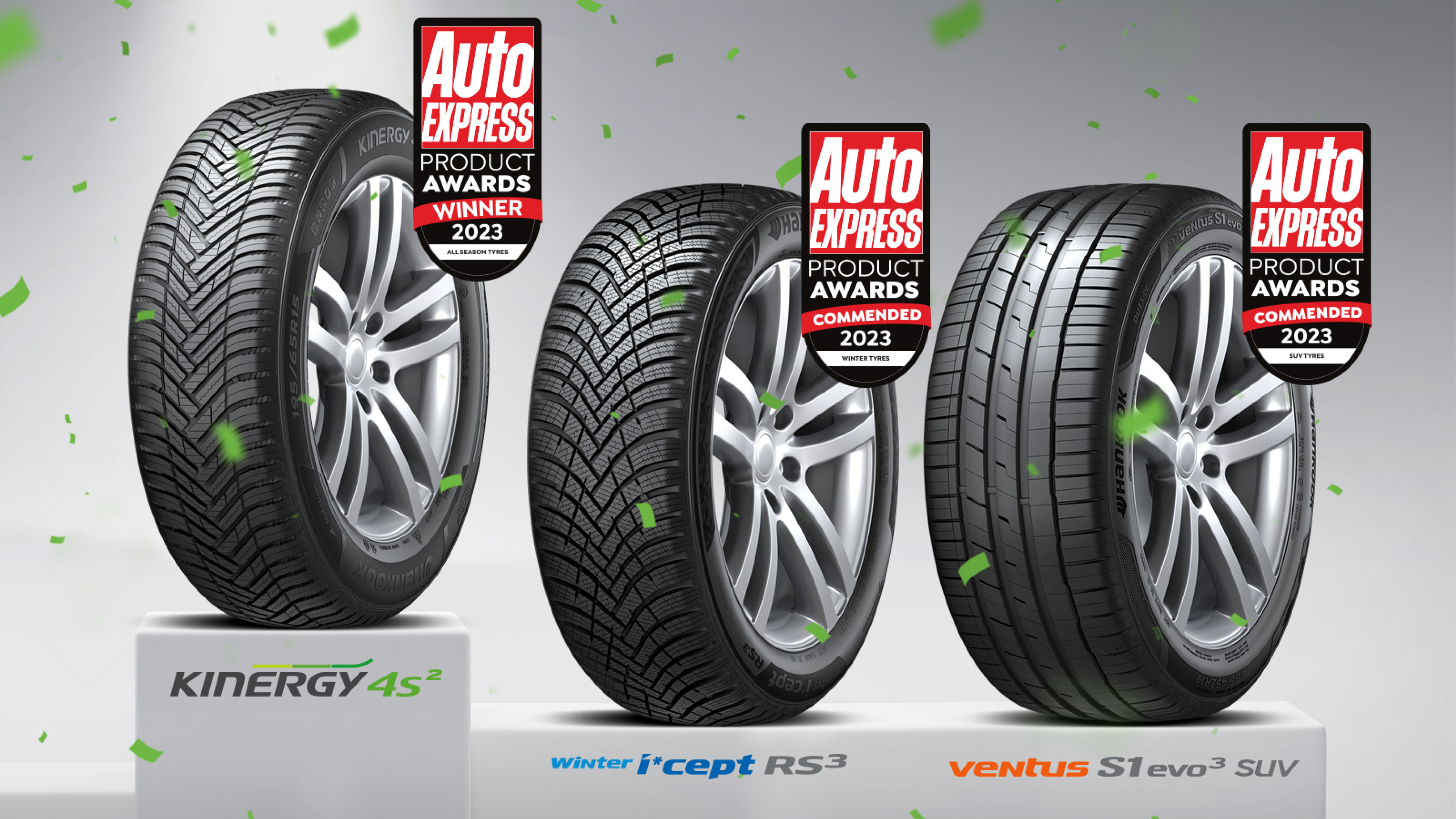 El Kinergy 4S 2 vuelve a ser el ganador en la categoría “Neumático 4 estaciones”. Ventus S1 evo 3 SUV recibe la calificación “Mención Especial” gracias a sus excelentes propiedades de frenado y conducción en mojado. Hankook Winter i*cept RS 3 recibe por primera vez el premio “Producto del año”.