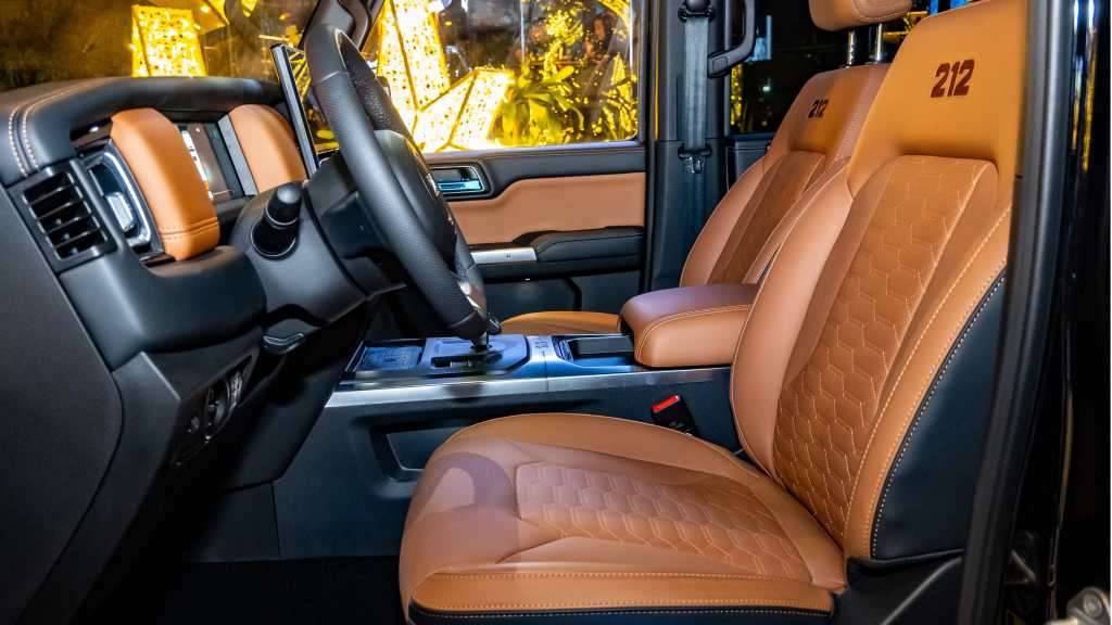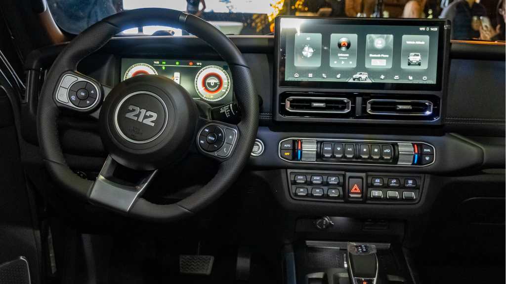 En el interior, el 212 sorprende. Volante y asientos en cuero, pantalla táctil de 12.3 pulgadas, cluster digital de 10.25 pulgadas, carga inalámbrica de 50W, conectividad Bluetooth y puertos USB y Tipo-C delanteros y traseros. El asiento del conductor incorpora calefacción y masaje, una combinación poco común en un vehículo con espíritu todoterreno.