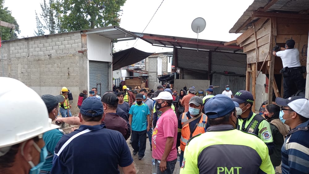 Por varios minutos se vivieron momentos de tensión cuando la PNC dispersó a los comerciantes inconformes al lanzarles bombas lacrimógenas, también, algunas personas trataron de impedir el paso de las máquinas para desmantelar los puestos, y dejó a varias personas heridas, entre ellas seis empleados de la municipalidad con fracturas expuestas.