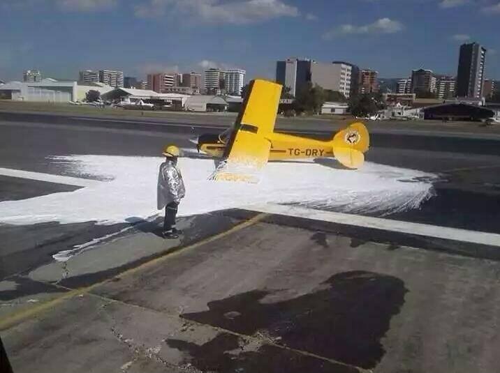 Era piloteada por el capitán Roberto Alfonso Guirola Cóbar quien fue asistido con los primeros auxilios por los Bomberos de Aeronáutica Civil, aunque no fue trasladado a un centro asistencial, porque se le detectaron solo heridas leves y Guirola prefirió retirarse por sus propios medios.