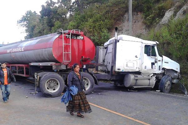 SAN JERÓNIMO.- El percance ocurrió a eso de las 6.30 horas en el km 142 de la ruta a las Verapaces, San Jerónimo, en donde chocaron un tráiler que transportaba combustible y un camión. No se reportaron heridos.