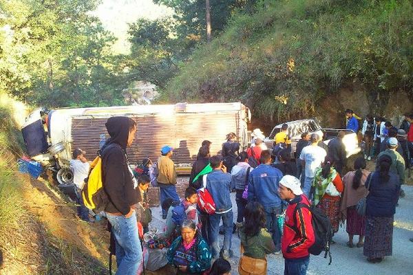 SAN MARTÍN JILOTEPEQUE- El autobús de Transportes María Velásquez, salió de Joyabaj, El Quiché, a eso de las 4 horas, con unos 60 pasajeros, que se dirigían a Nueva Santa Rosa, Santa Rosa a cortar café. Algunos de los heridos comentaron que el piloto conducía a excesiva velocidad y en un gancho que está en la bajada, perdió el control de la unidad, se estrelló contra un paredón y luego volcó.