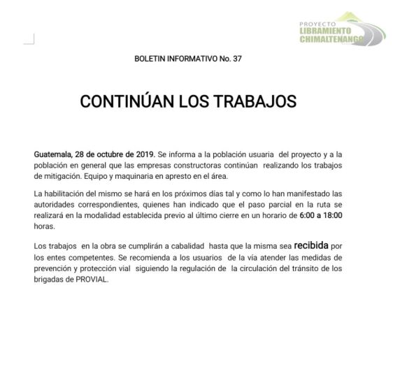 Los que viajan a occidente experimentaron un gran alivio a partir del 12 abril de este año, justo previo a la Semana Santa, cuando se empezó a emplear el libramiento de Chimaltenango, porque eso permitía experimentar un trayecto menos agotador debido a la reducción en el tiempo de viaje.