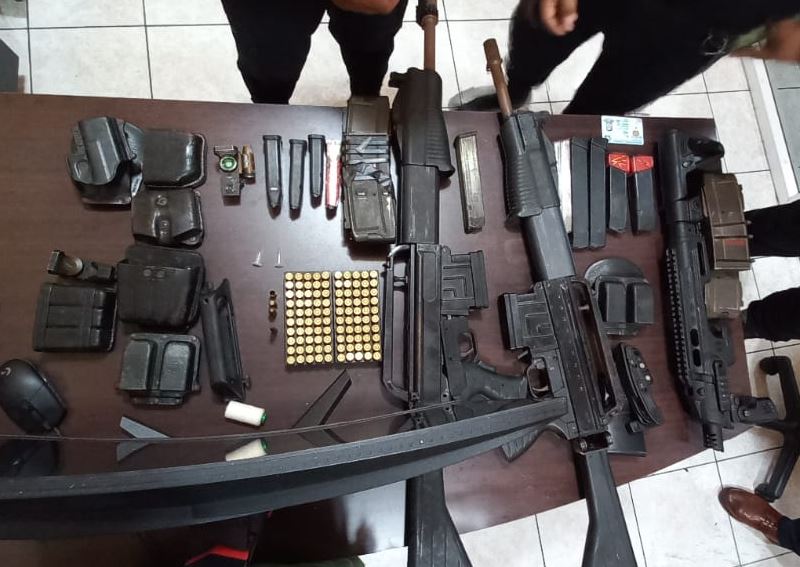 Según la PNC, fueron halladas tres armas de fuego, municiones de varios calibres, tolvas, portatolvas.